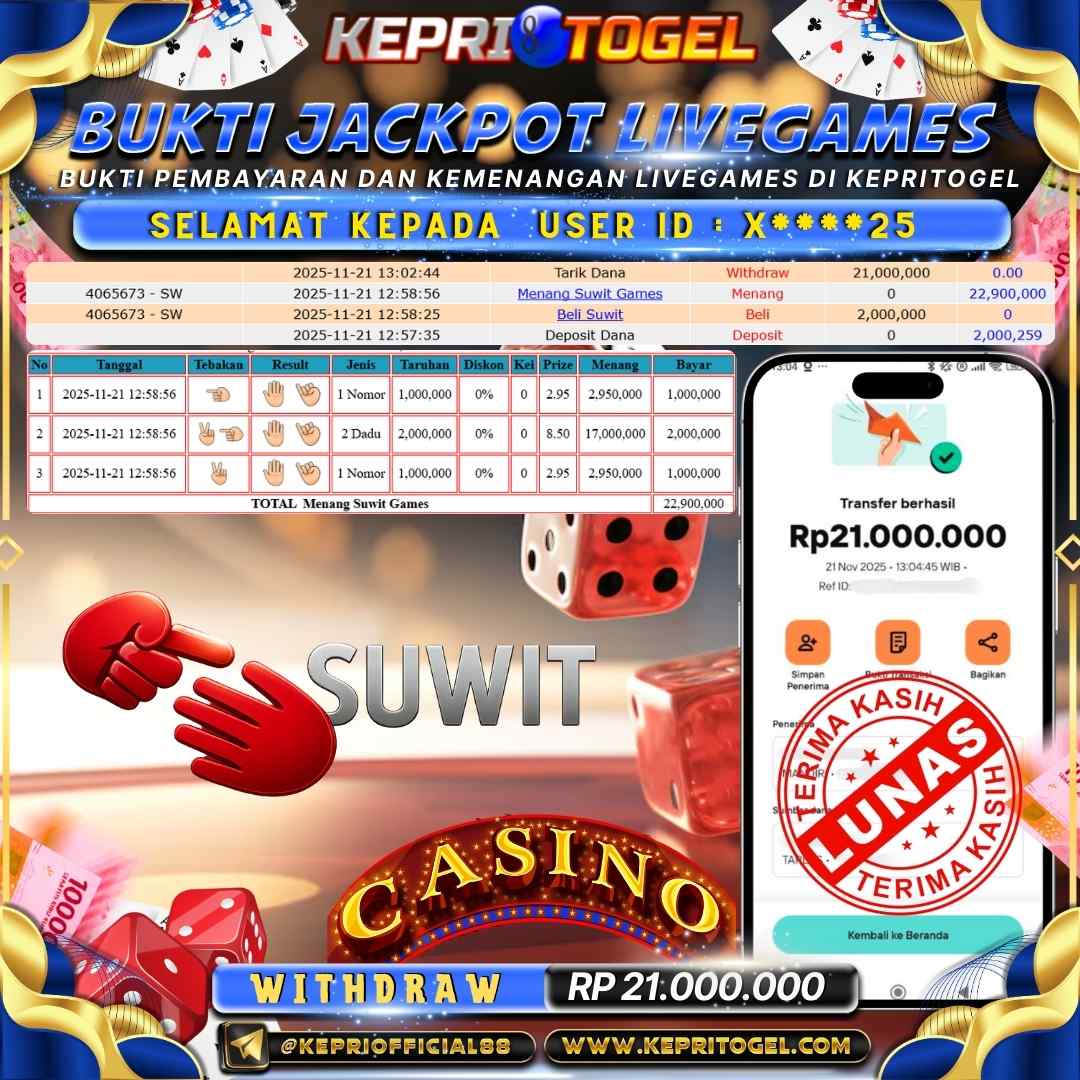 Kepritogel Jackpot Live Game Suwit Rp21,000,000