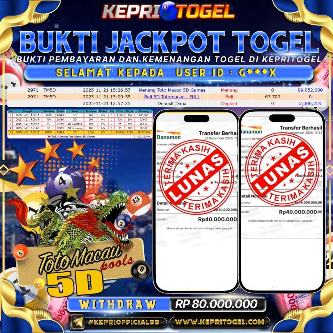 Kepritogel Jackpot Togel Toto Macau 5D Rp80,000,000