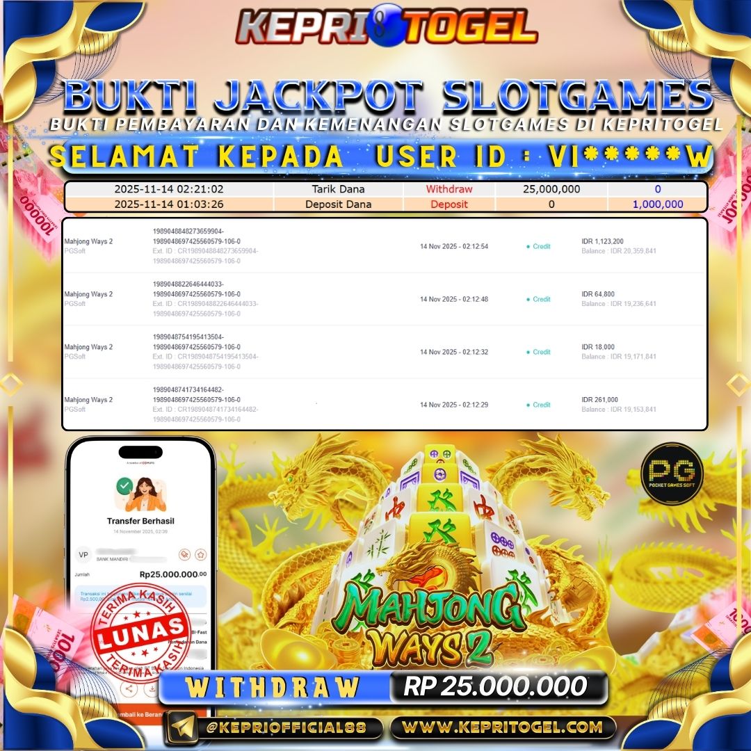 Kepritogel Jackpot Slot Mahjong Ways 2 Rp25,000,000