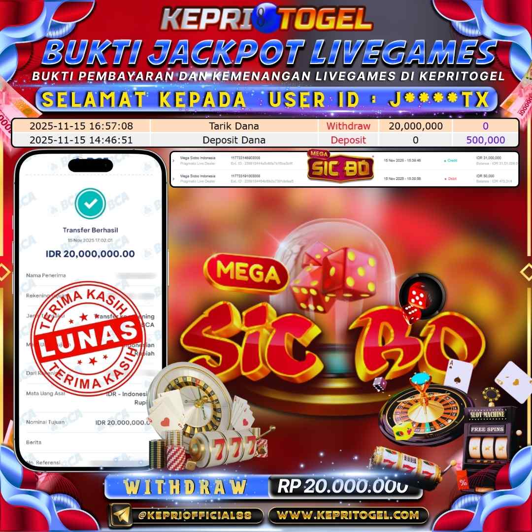Kepritogel Jackpot Live Game Mega Sic Bo Rp20,000,000