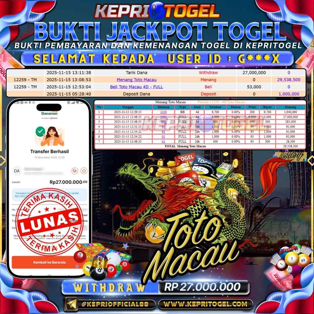 Kepritogel Jackpot Togel Toto Macau Rp27,000,000