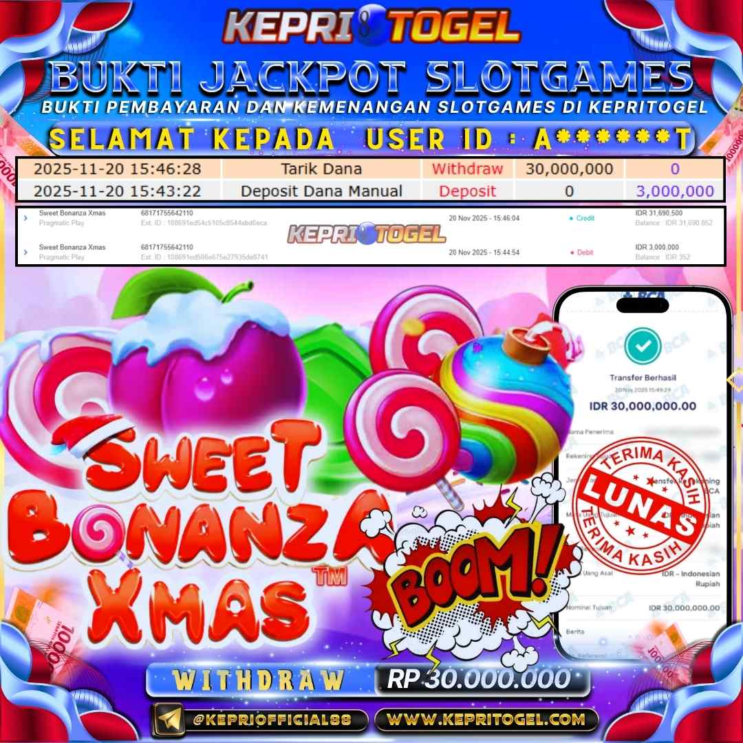 Kepritogel Jackpot Slot Sweet Bonanza Xmas 1000 Rp30,000,000