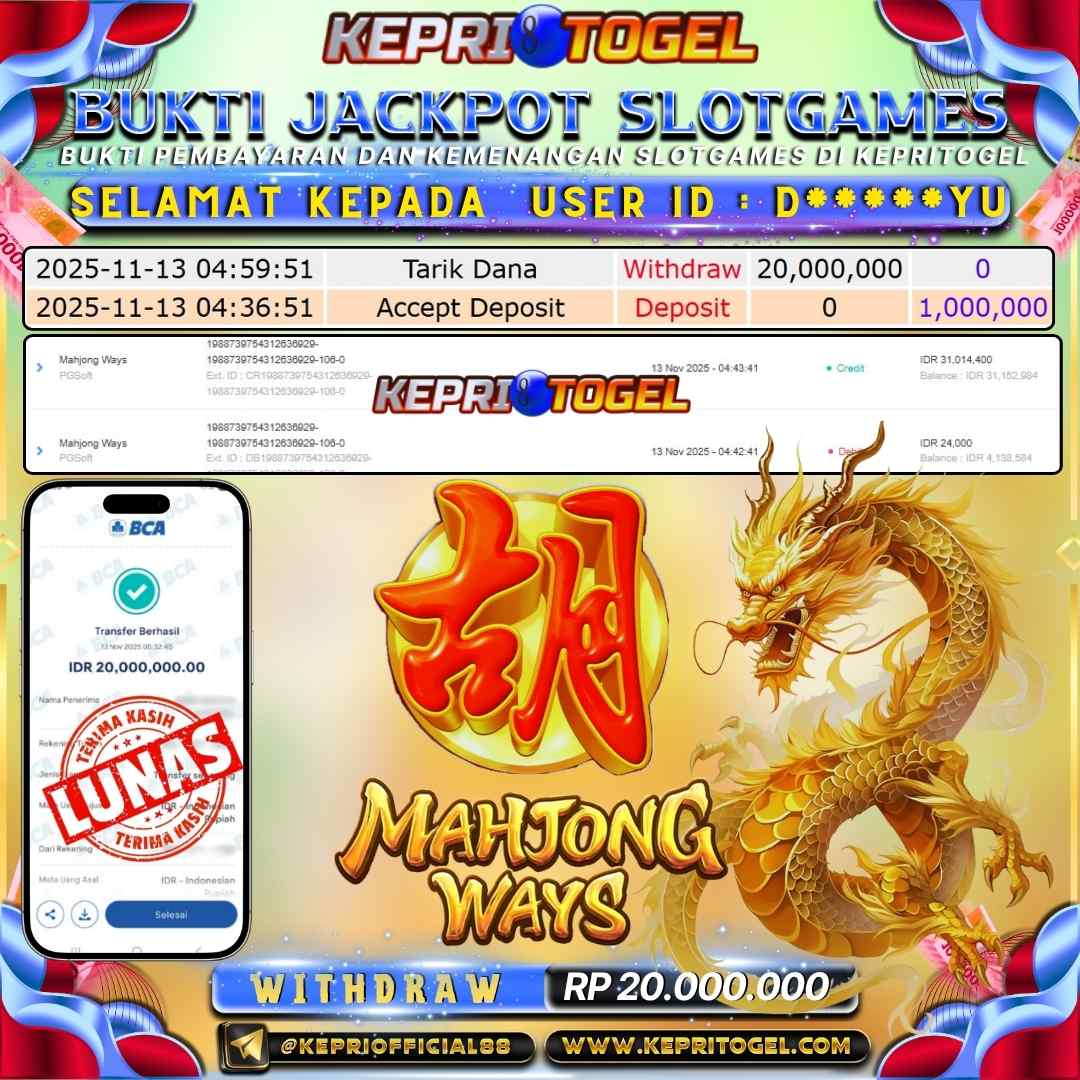 Kepritogel Jackpot Slot Mahjong Ways Rp20,000,000