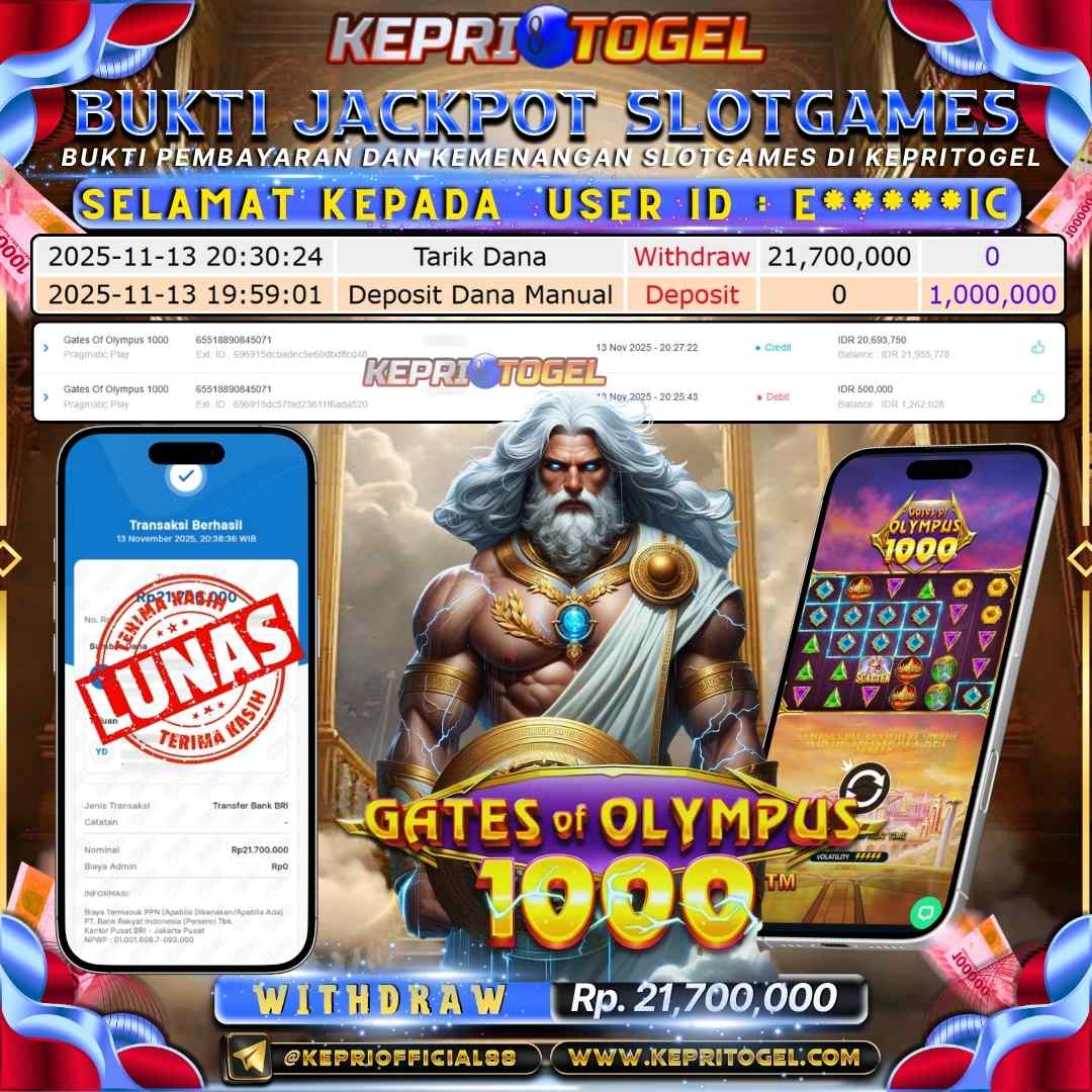 Kepritogel Jackpot Slot Gates Of Olympus 1000 Rp21,700,000