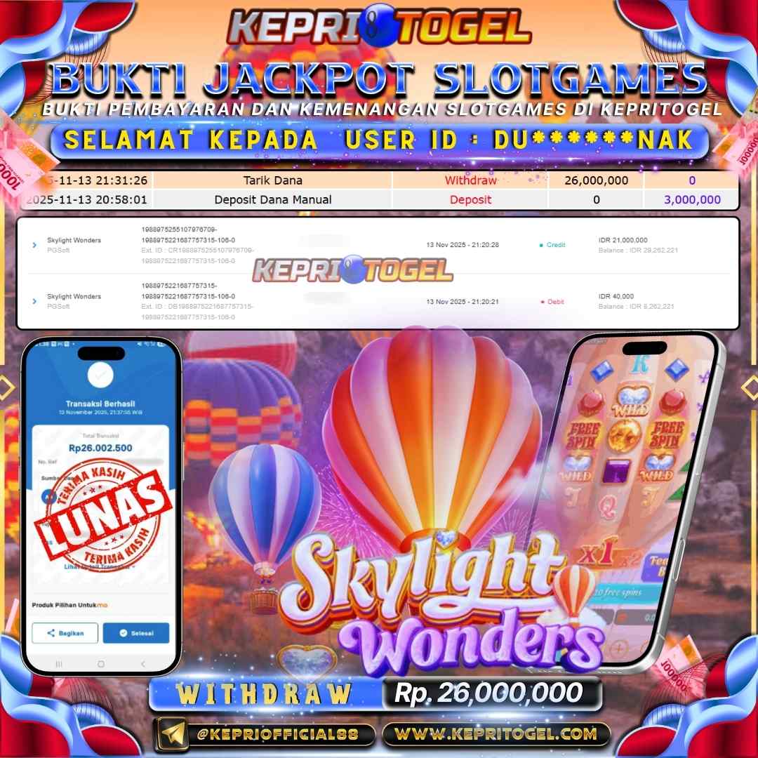 Kepritogel Jackpot Slot Skylight Wonders Rp26,000,000
