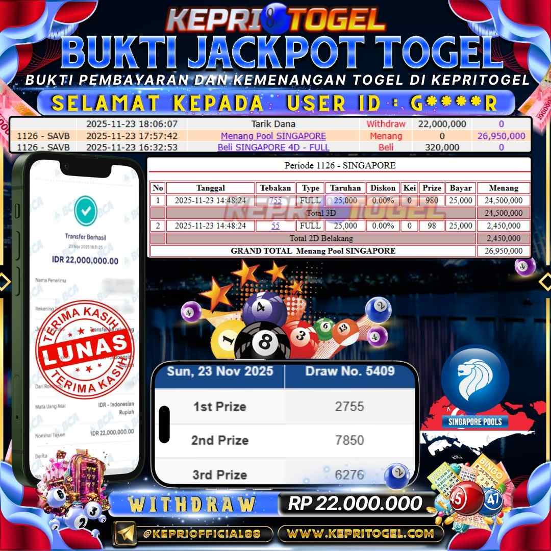Kepritogel Jackpot Togel Singapore Pools Rp22,000,000