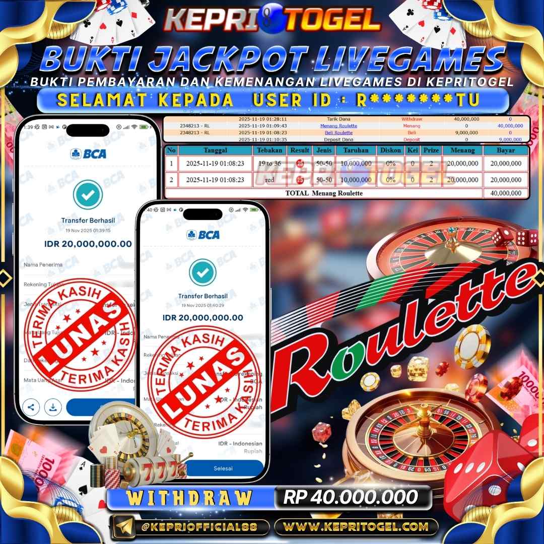 Kepritogel Jackpot Live Game Roulette Rp40,000,000