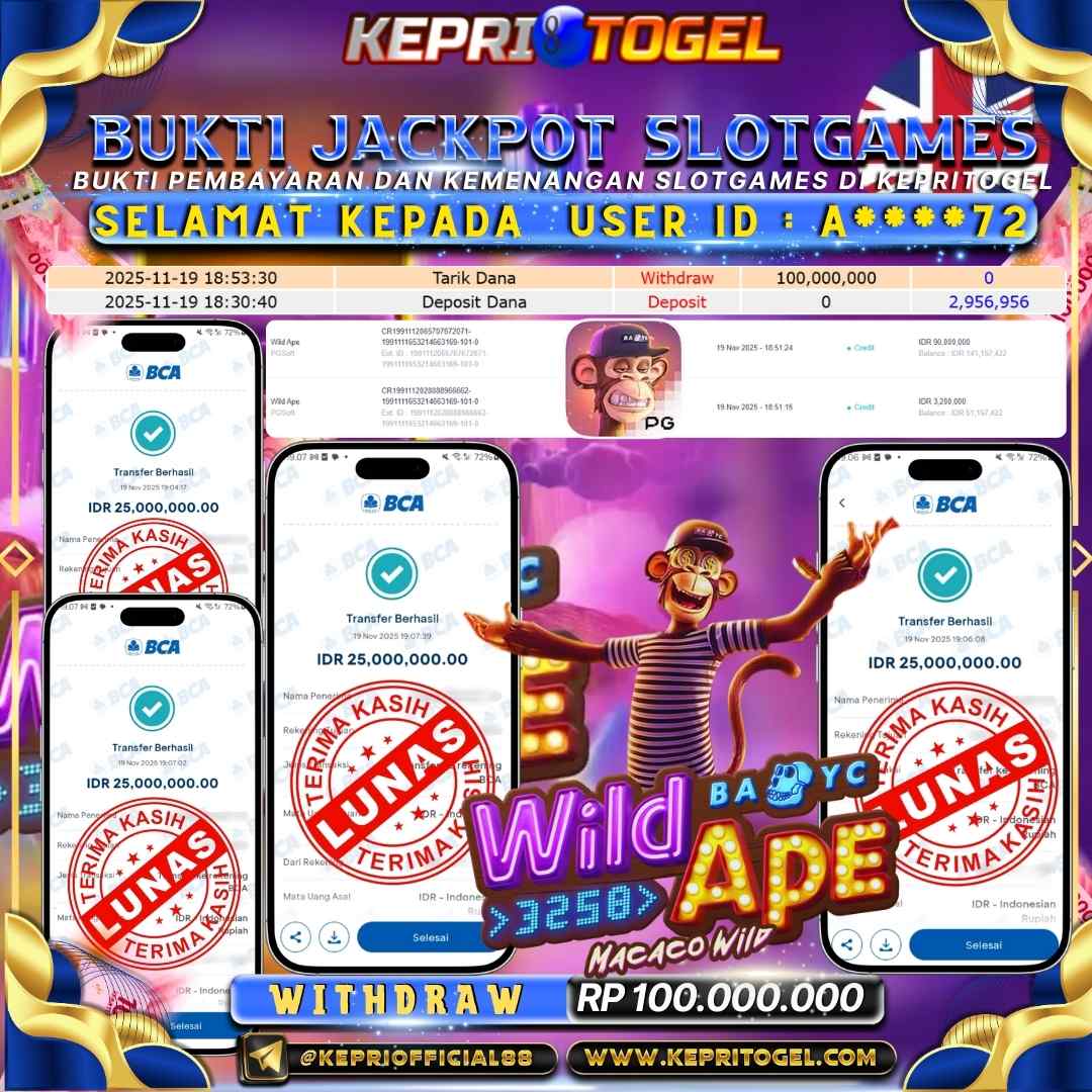 Kepritogel Jackpot Slot Wild Ape Rp100,000,000