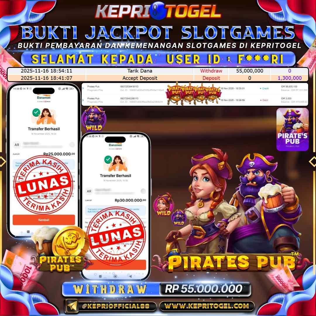 Kepritogel Jackpot Slot Pirates Pub Rp55,000,000