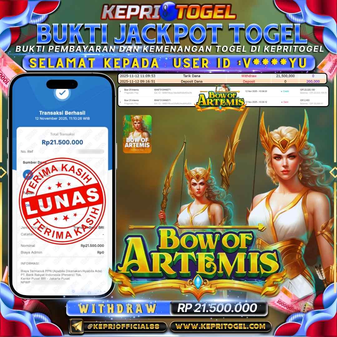 Kepritogel Jackpot Slot Bow of Artemis Rp21,500,000