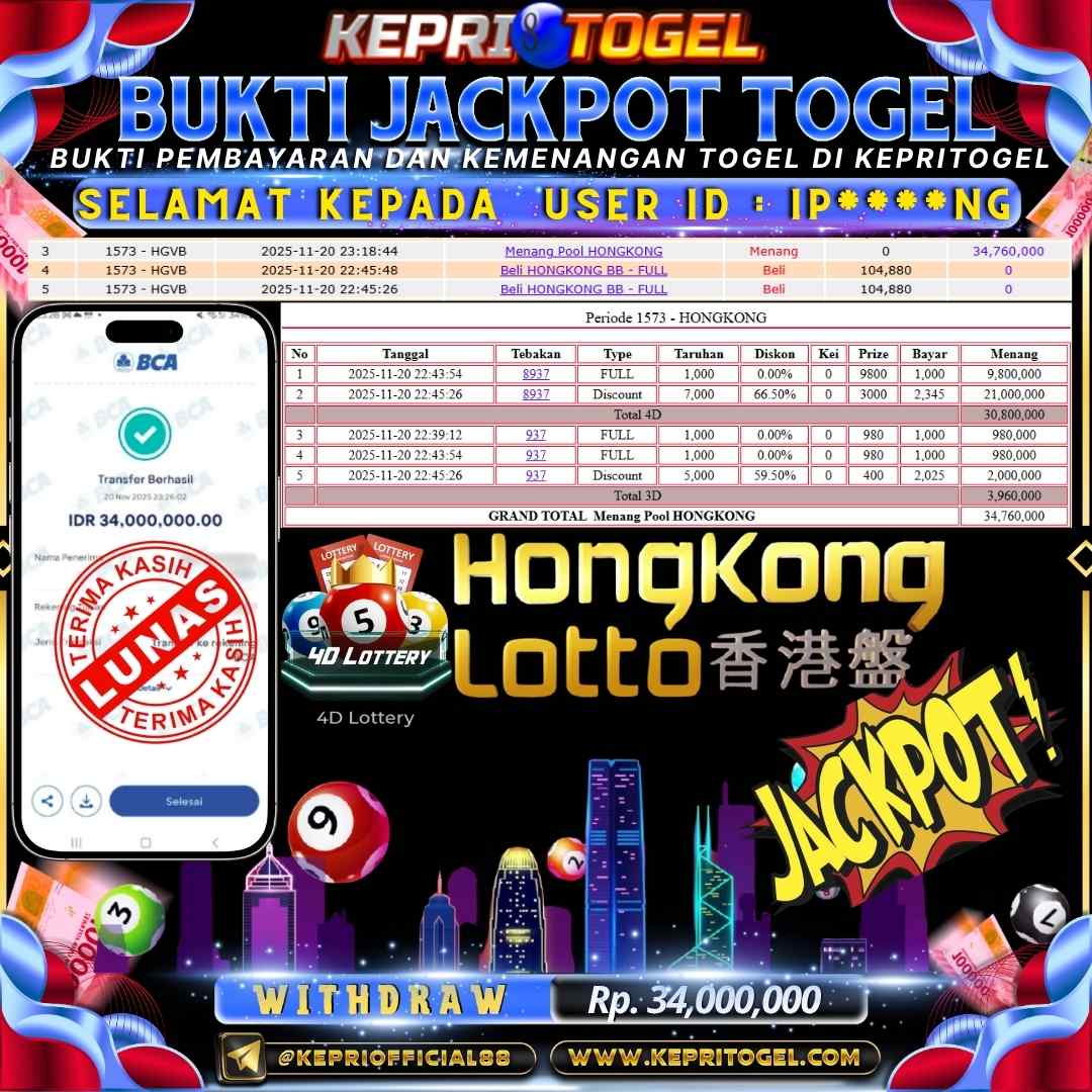 Kepritogel Jackpot Togel Hongkong Lotto Rp34,000,000