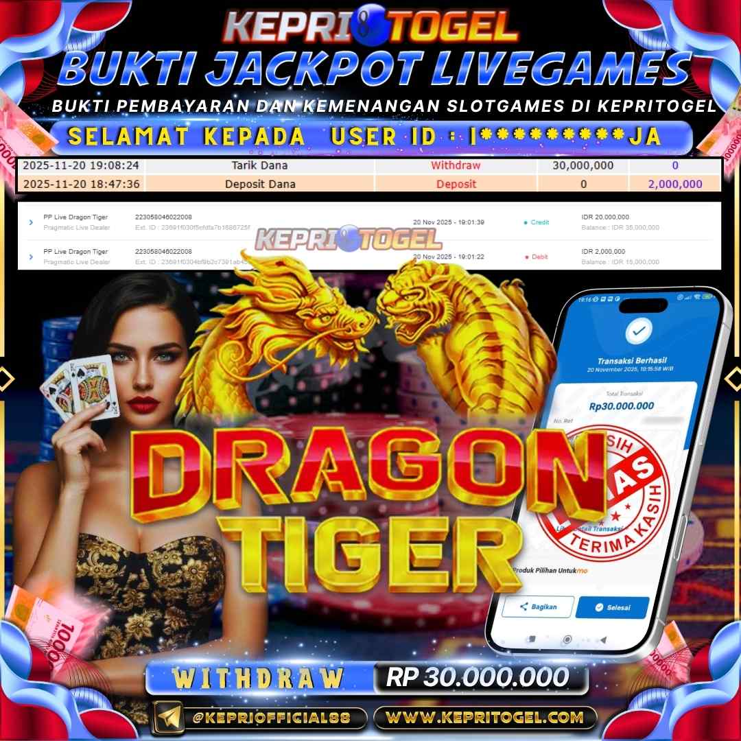 Kepritogel Jackpot Live Game Dragon Tiger Rp30,000,000