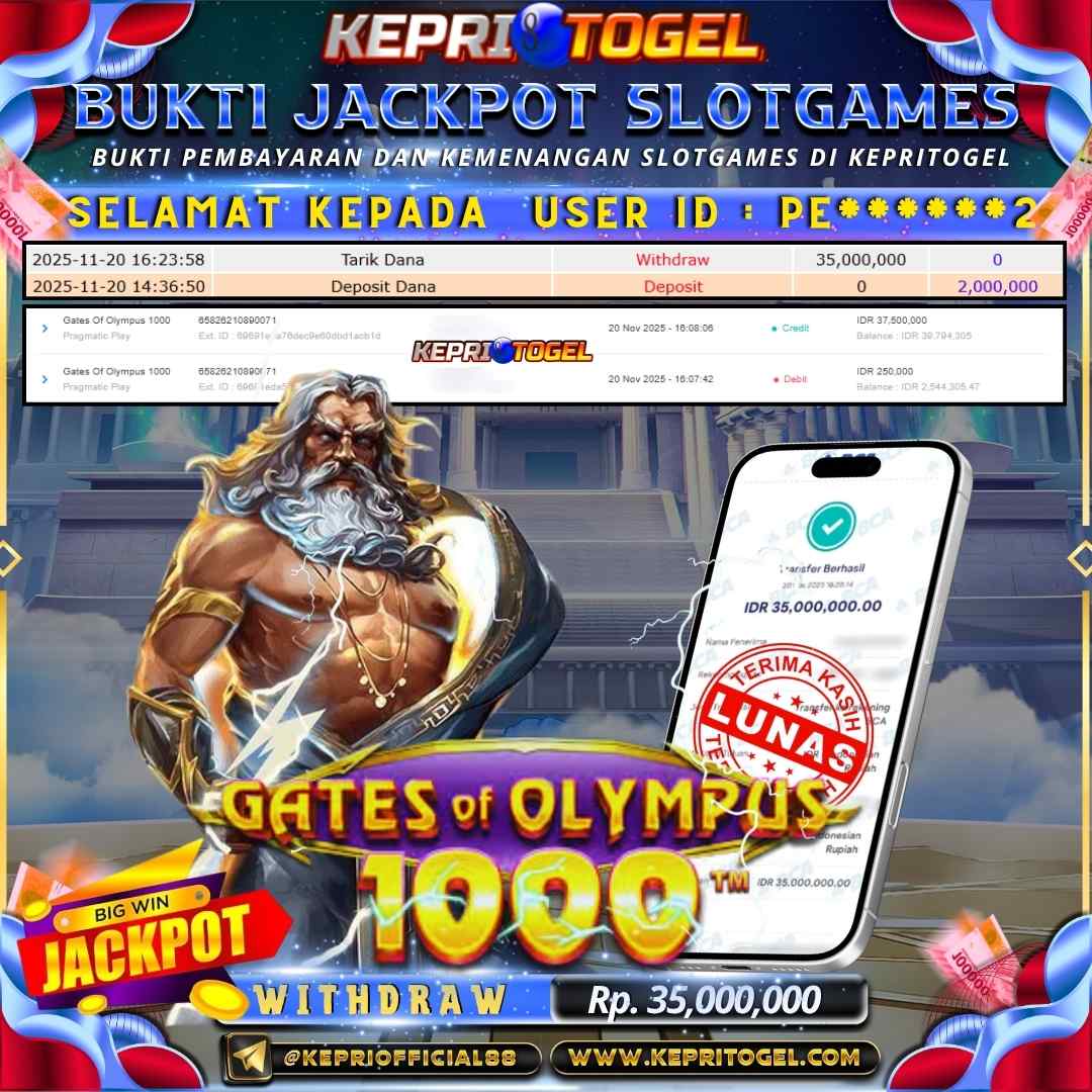 Kepritogel Jackpot Slot Gates of Olympus 1000 Rp35,000,000