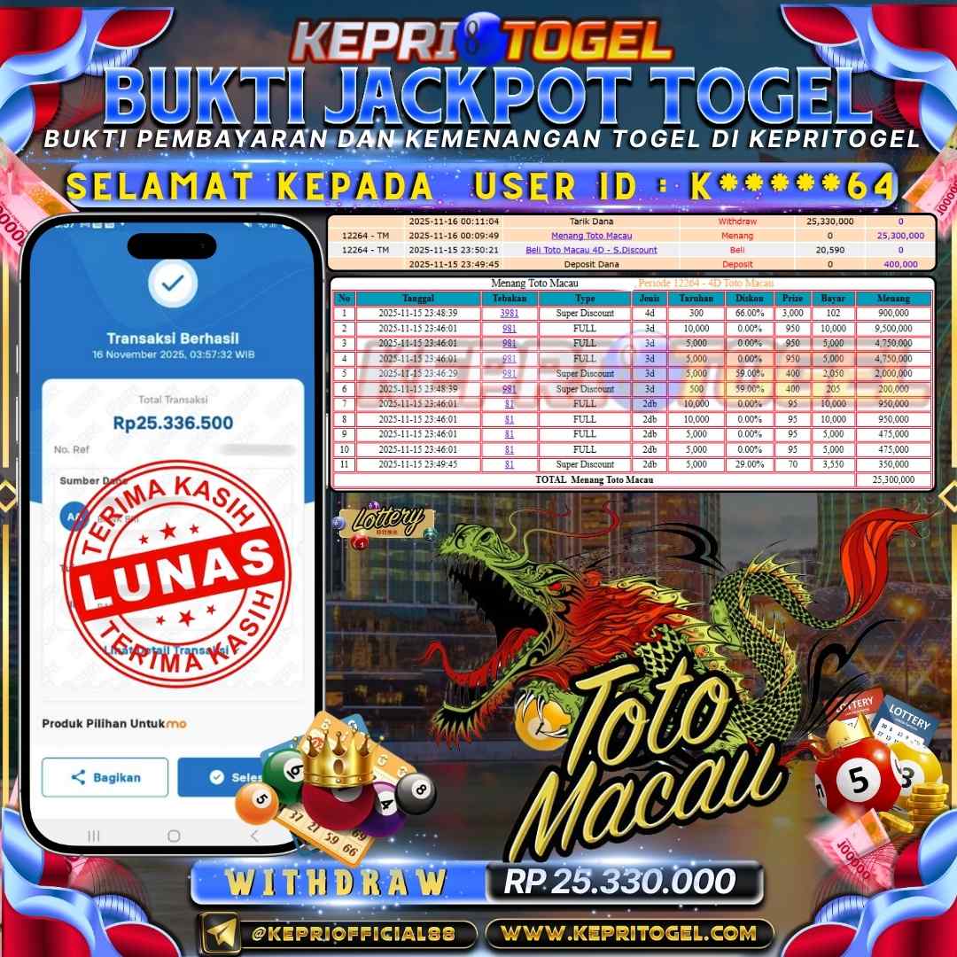 Kepritogel Jackpot Togel Toto Macau Rp25,330,000