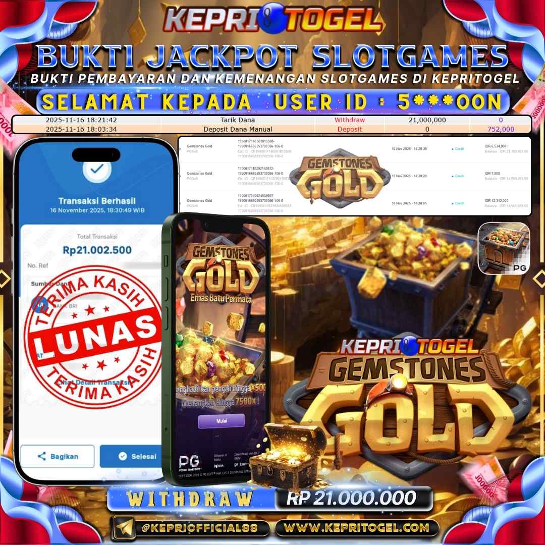Kepritogel Jackpot Slot Gemstones Gold Rp21,000,000