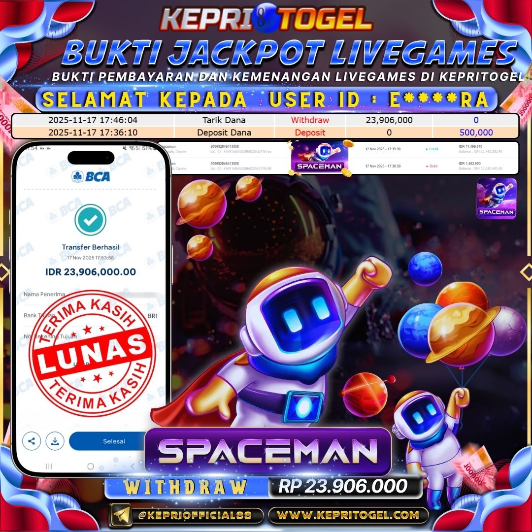Kepritogel Jackpot Live Game Spaceman Rp20,000,000