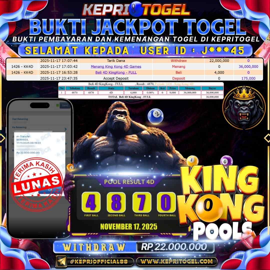 Kepritogel Jackpot Togel Kingkong Pools Rp22,000,000